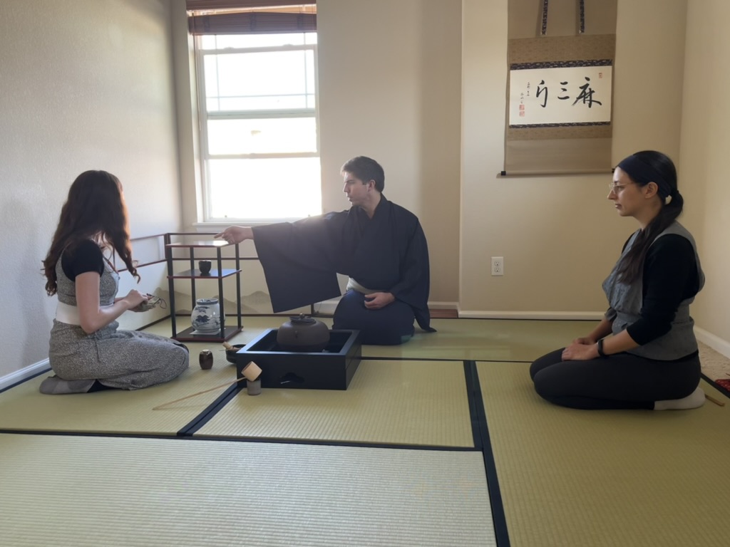Tea lessons are traditionally held in a “one-room schoolhouse” style, where one student goes through a procedure at a time. Other students have the opportunity to sit as a guest, or simply observe as a non-participant. Tea and sweets are always served to those in attendance.